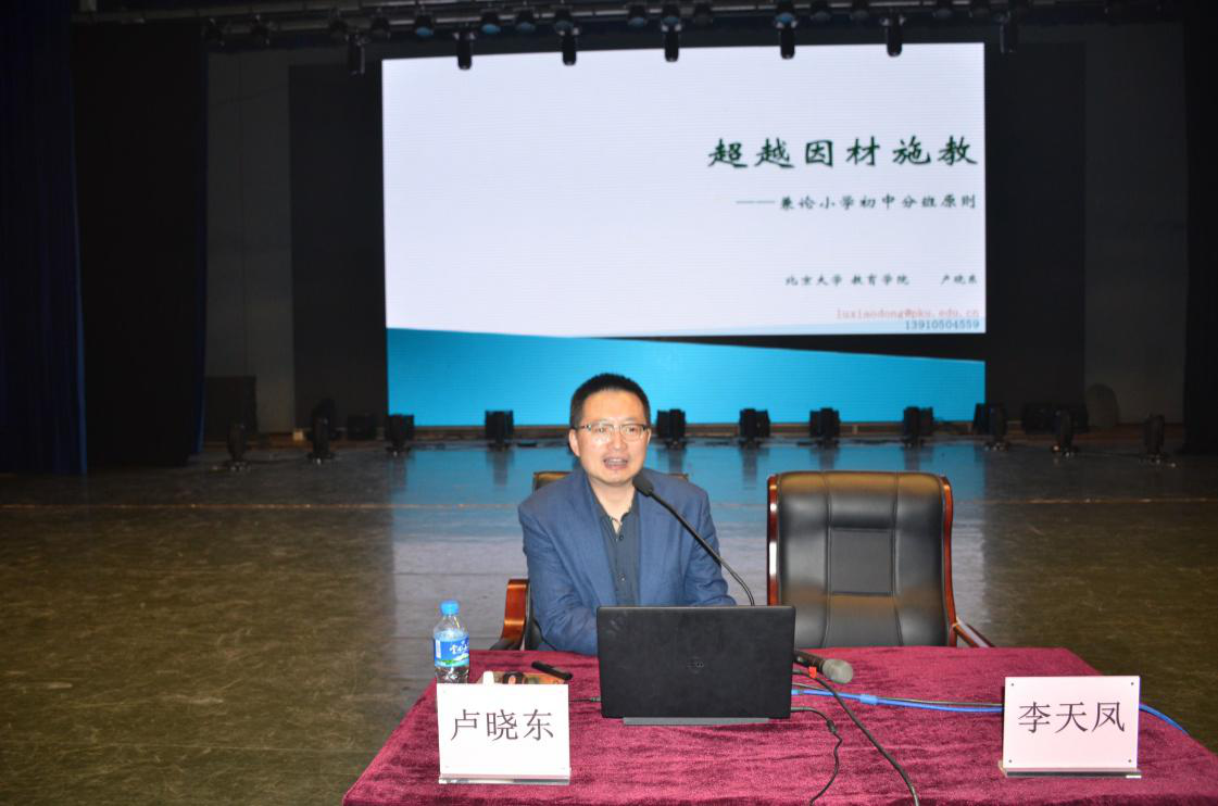 2019年4月8日上午,云南省“万名校长培训计划”第二期名家讲座第11讲在昆明理工大学红土会堂举行。北京大学教务部原副部长、元培学院原副院长、教育学院卢晓东研究员以《超越因材施教—兼论小学初中分班原则》为主题,为第二期参训的1000名学员授课。讲座由太阳成集团tyc33455cc官网教育科学与管理学院院长李天凤教授主持。