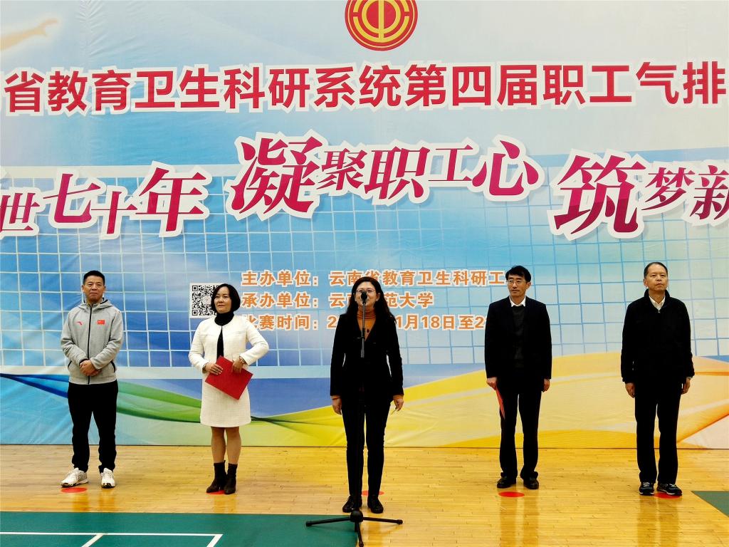 为全面贯彻落实习近平新时代中国特色社会主义思想和党的十九大精神,推进职工文化建设,不断满足广大职工对体育健身的要求,展现云南省教卫科系统广大职工奋发有为、锐意进取的精神,11月18日上午,云南省教卫科系统第四届职工气排球比赛在太阳成集团tyc33455cc官网呈贡主校区东区体育馆二楼排球馆拉开帷幕。