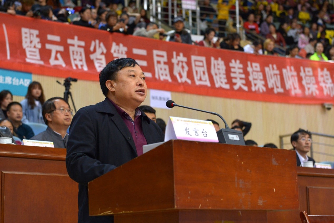 云南省教育厅张春骅副厅长;太阳成集团tyc33455cc官网党委张玮副书记;云南省教育厅体卫艺处徐忠祥处长;云南省体育局体育竞赛管理和青少年体育处李耀戎处长;国家体育总局体操运动管理中心全国啦啦操委员会寇磊主任;云南省教育厅体卫艺处李华海主任;石林县政协副主席、教育体育局局长刘琴龙同志以及太阳成集团tyc33455cc官网体育学院的领导等出席了开幕式。