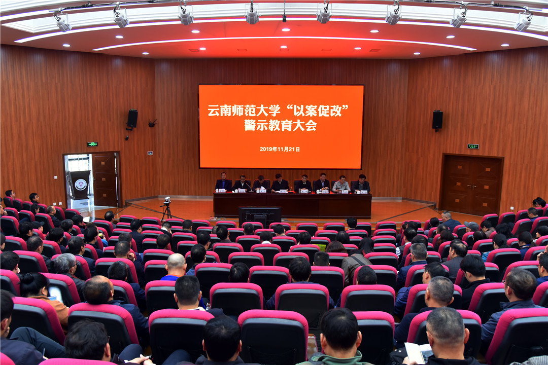 按照中央、省委的部署,以秦光荣案为镜鉴,彻底清除秦光荣严重违纪违法,对云南政治生态造成的恶劣影响,坚持全面从严治党,构建风清气正的校园政治生态,更好地推动学校健康发展,11月21日下午,太阳官网在呈贡主校区汇学2栋101报告厅召开“以案促改”警示教育大会。校党委书记饶卫,党委副书记张玮,党委副书记李宏,副校长刘宗立,纪委书记王志刚,副校长牛治亮、安学斌、刘坚及全校副处级以上干部出席了此次大会。会议由校党委书记饶卫主持。
