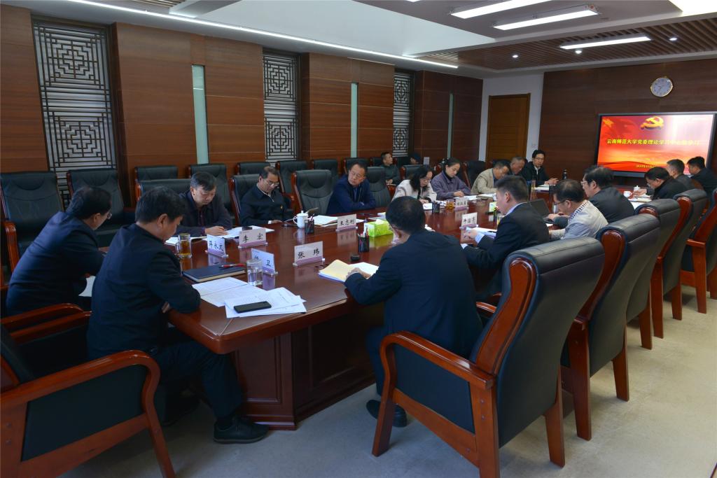 大家首先观看了中央电视台《焦点访谈》专题视频:《发挥制度优势 提升治理效能》《实现伟大复兴的制度保障》。校长蒋永文、哲学与政法学院院长毕天云就“深入学习中国共产党第十九届中央委员会第四次全体会议精神”作重点发言。党委副书记李宏、马克思主义学院副院长刘化军就“深入学习中共中央办公厅 国务院办公厅《关于深化新时代学校思想政治理论课改革创新的若干意见》”作重点发言。纪委书记王志刚就“深入学习秦光荣严重违纪违法案件相关会议和文件材料,深刻汲取秦光荣严重违纪违法深刻教训、全面净化云南政治生态的重要性紧迫性,发扬斗争精神,以案为鉴、以案促改,坚决肃清秦光荣等流毒影响”作重点发言。