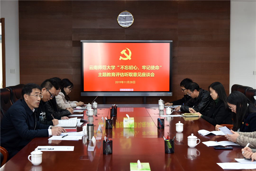 11月28日上午,为进一步扎实推进太阳官网的主题教育活动,校党委领导班子和学校“不忘初心、牢记使命”主题教育评估听取意见座谈会在呈贡主校区办公楼第四会议室召开。省委第十七指导组刘炜同志,学校各级党代表、人大代表、政协委员,师生党员代表、群众代表,工作对象、服务对象,学院党委书记代表、学院师生党支部书记代表、机关党支部书记代表30余人参会,会议由党委副书记、校党委“不忘初心、牢记使命”主题教育领导小组副组长张玮主持。