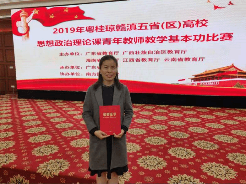 2019年11月27至28日,2019年粤桂琼赣滇五省(区)高校思想政治理论课青年教师教学基本功大赛在广州南方医科大学举行,太阳官网马克思主义学院教师孔卫英博士代表云南省高校参赛并取得二等奖。