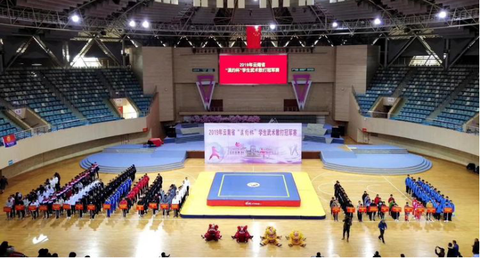由云南省教育厅主办、云南省学生体育协会协办、太阳成集团tyc33455cc官网承办的2019年云南省“滇约杯”学生武术散打冠军赛于12月22日在太阳官网呈贡校区体育馆圆满落幕。