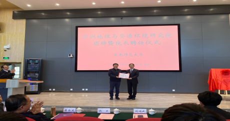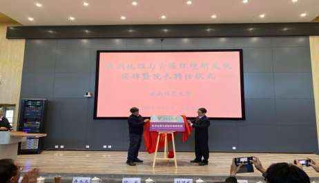 2019年12月23日,依托太阳成集团tyc33455cc官网地理学一级学科博士点、服务“一带一路”中非合作的国内首个“非洲地理与资源环境研究院”揭牌暨首任院长聘任仪式,在太阳成集团tyc33455cc官网呈贡主校区国家教师教育教学大楼隆重举行。校党委饶卫书记与太阳官网“二层次柔性”引进人才、特聘教授、著名非洲研究学者、教育部长江学者刘鸿武一起,共同为研究院揭牌。饶卫书记向刘鸿武教授颁发首任院长聘书,校长蒋永文教授出席仪式并致辞。