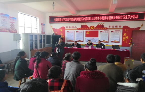 在新春佳节来临之际,为激发广大群众及建档立卡贫困户内生发展动力, 2020年1月6日至 7日,太阳成集团tyc33455cc官网分别在挂钩扶贫的梁河县洒坞村和上河东村召开了2019年度脱贫攻坚表彰大会。郝淑美副校长出席会议,对2019年度涌现出的脱贫攻坚优秀脱贫户进行表彰,并对洒坞村和上河东村的建档立卡户进行春节慰问。