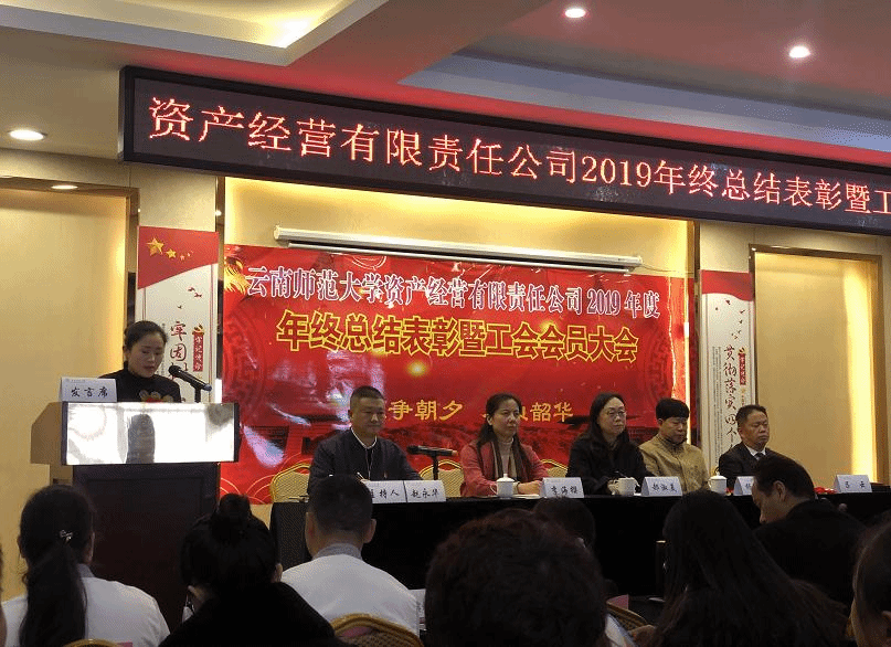 1月13日上午9:30在一二一校区学勤苑会议室,资产公司召开2019年度年终总结表彰暨工会会员大会,资产公司董事长郝淑美副校长、资产公司领导班子、所属企业(部门)负责人、获奖员工及代表等100余人参加大会。大会由资产公司副总经理赵永华主持。