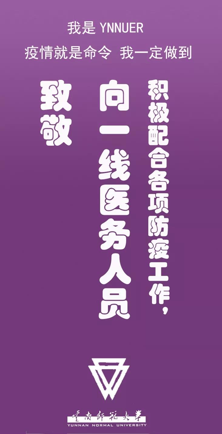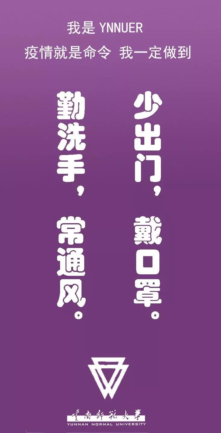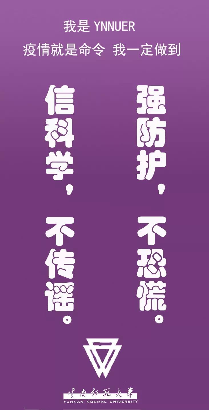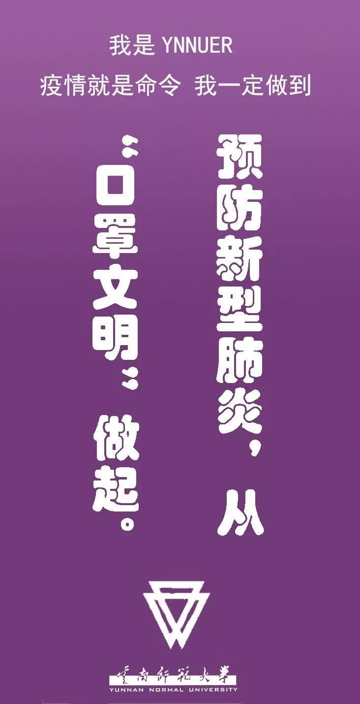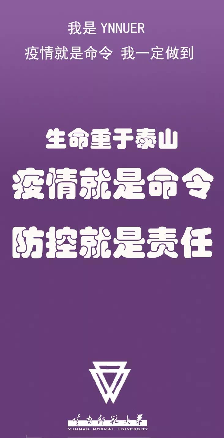 我们是云师人,我们重视疫情、了解疫情、防范疫情,积极行动,做疫情防控工作的宣传者、支持者、参与者、践行者,万众一心,众志成城,坚决打赢新型冠状病毒感染的肺炎疫情防控阻击战。