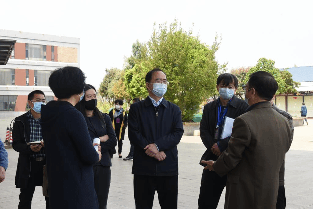 蒋永文校长一行首先来到云南师大附属中学,听取了附中党委书记王朝训关于学校防疫物资储备及开学前各项准备工作的汇报,检查了附属中学隔离观察室、学生宿舍、食堂、校医室等疫情防控措施,深入了解附属中学教职工返校返岗、线上教学、学生家长意见等方面情况。