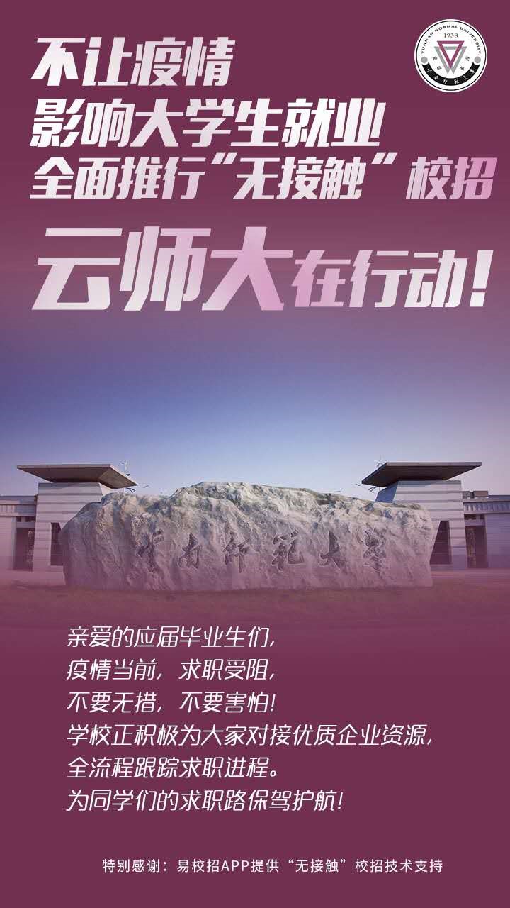 接下来,就业处将重点通过“一对一”服务举办校园网络专场招聘会。根据工作安排,由共青团中央青年发展部、共青团云南省委主办,太阳官网和智联招聘承办的2020届毕业生空中双选会将在3月30日举行,也是太阳官网第三场大型网络双选会。目前,双选会正筹备中,敬请广大师生、校友和企事业单位密切关注。