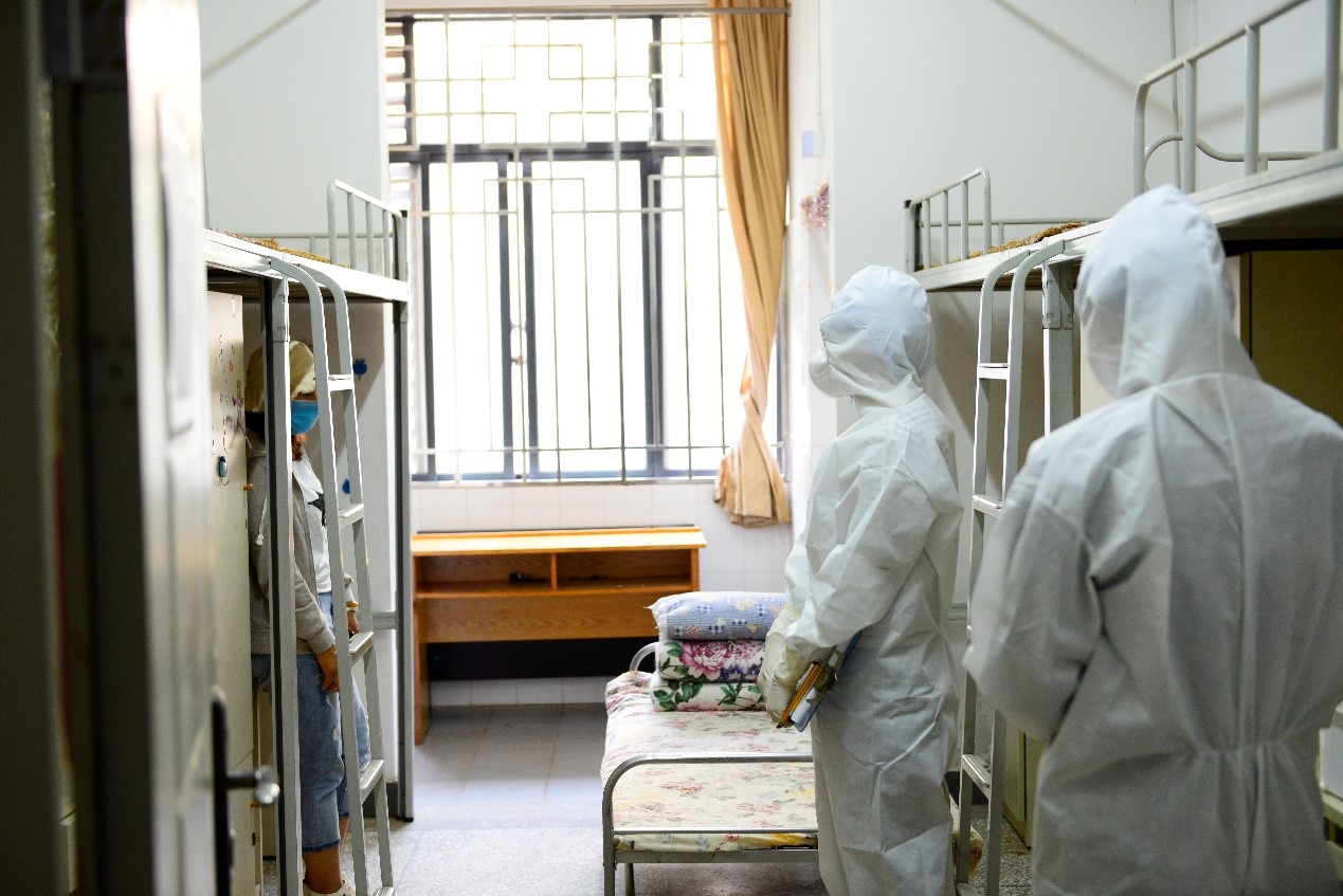 本次演练预设学生宿舍出现疑似患者、学生食堂出现疑似患者两个场景进行应急处置,同时对快递中心、超市、学生食堂服务保障流程进行演练。
