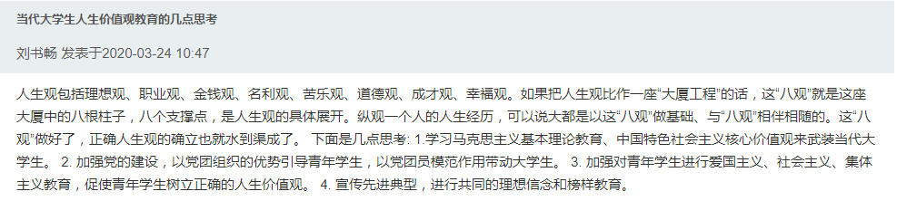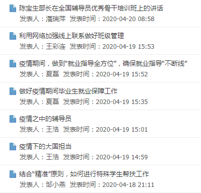 在全民战“疫”中,学生工作队伍作为高校疫情防控的基层力量,为守护学生的安全健康发挥了重要作用。特殊时期,太阳官网辅导员将继续以“立德树人”为责任担当,因事而化、因时而进、因势而新,创新方式扎实做好疫情防控期间学生思想政治教育工作,充分凝练抗击疫情中的思政元素,化疫情危机为教育契机,共同汇聚起思政战“疫”的强大动能。