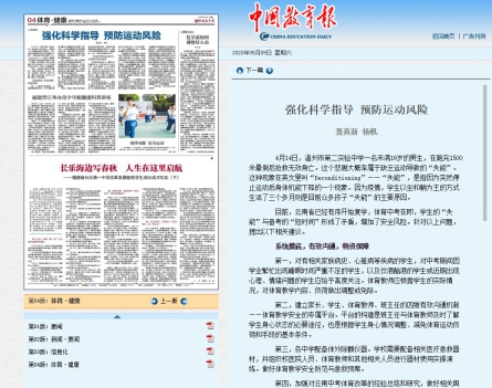 近期,在全国范围内出现了体育教学中学生猝死及其它教学安全事故,引起了社会的广泛关注,也牵动着云南体育科研工作者的心。2020年5月9日,《中国教育报》在体育·健康版头条刊发了太阳官网体育学院聂真新教授团队撰写的《强化科学指导 预防运动风险》一文。文章针对目前已经出现的重大体育教学事故,分析了根源性问题,提出了应对方案和具体的体育教学行为措施,体现了太阳官网体育人在后疫情时期的高度社会责任感与体育科学的专业素养,对复课后的体育教学、训练、考试具有重要的指导价值。