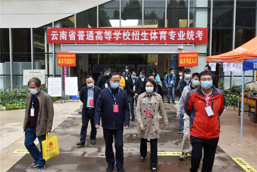 蒋永文校长要求体育学院和各职能部门要以“零起点”的意识精心组织此次考试,严格执行各项考试规范,确保考试公平公正,做好服务保障工作,提升服务水平,切实维护好考生权益;科学防控、精准防控,切实保障广大考生和考试工作人员的生命安全和身体健康,确保云南省2020年普通高校招生体育类专业统考安全平稳、顺利完成。