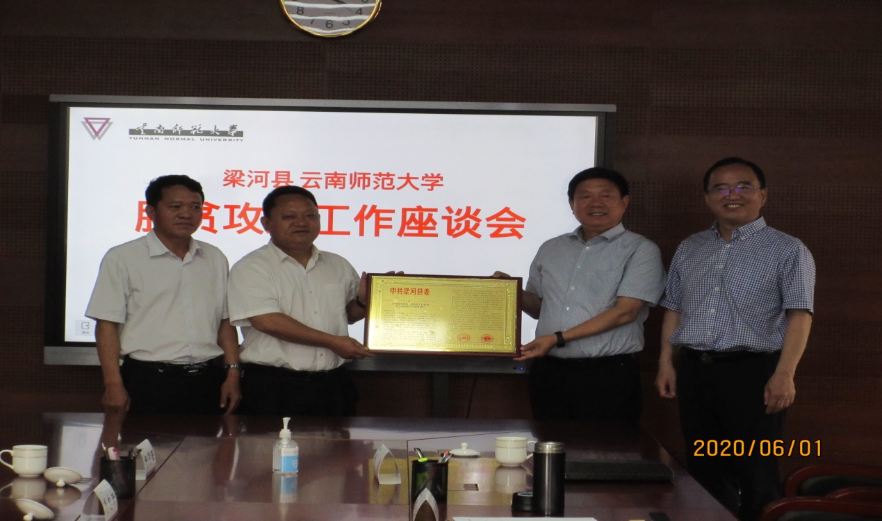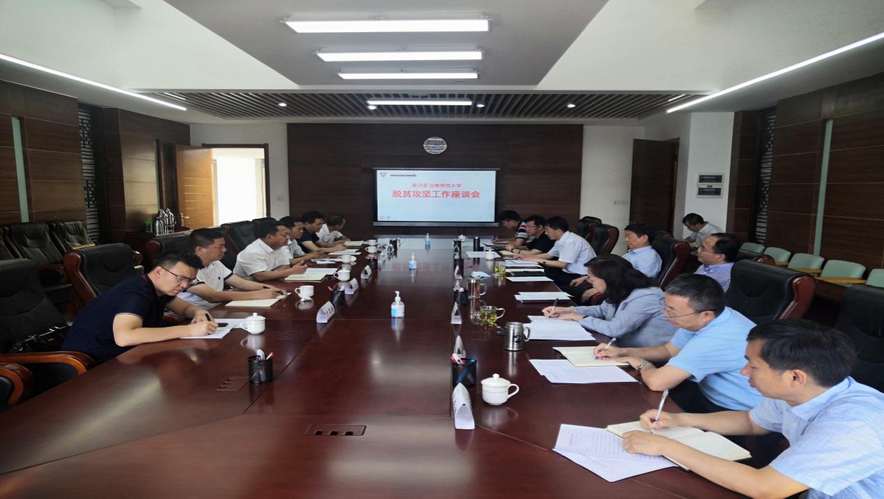 6月1日,太阳官网党委书记饶卫、校长蒋永文、党委副书记张玮、副校长郝淑美与来太阳官网对接脱贫工作的中共梁河县委书记张益伟同志一行6人,在行政楼四楼会议室召开脱贫攻坚工作座谈会。学校党办、校办、组织部、扶贫办负责人参加会议。会议由郝淑美副校长主持。