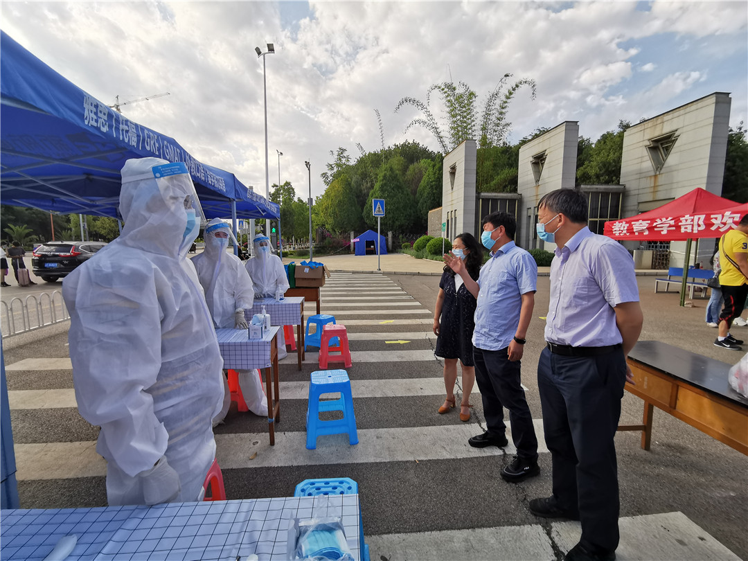 6月2日下午,校党委书记饶卫、校党委副书记李宏到研究生工作部、教务处、学生工作部、学生返校接待点调研检查学生返校情况,看望慰问在返校管理工作一线的各学院、各部门教职工。党委宣传部部长余冰释、党委办公室副主任杨晓岚参加调研。