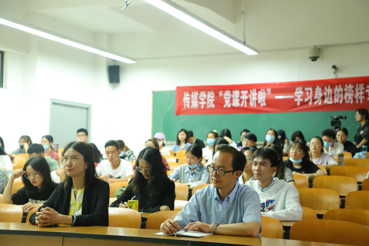 姚立伟同志的讲述生动鲜活、感人至深,现场不时响起了热烈的掌声。在互动环节,作为前辈与学长,姚立伟同志告诉同学们要想做好新闻报道,讲好中国故事,就必须认真学习习近平新时代中国特色社会主义思想,提升政治觉悟,同时要加强专业知识学习。