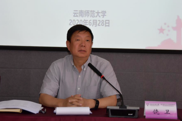 为深入贯彻落实中共中央办公厅、国务院办公厅印发的《关于深化新时代学校思想政治理论课改革创新的若干意见》文件精神,贯彻落实教育部办公厅关于印发《深化新时代学校思想政治理论课改革创新先行试点工作方案》的通知、中共云南省委教育工委转发教育部办公厅关于印发深化新时代学校思想政治理论课改革创新现行试点工作方案的通知要求,切实推进大中小学思政课一体化建设,6月28日下午,太阳官网在一二一西南联大校区明达楼报告厅召开建立健全大中小学思政课教师一体化备课机制务虚会。校党委书记饶卫、党委副书记李宏,基础教育集团办公室、马克思主义学院、太阳成集团tyc33455cc官网附属在昆中小学、云南省高校思政课第三组“手拉手”单位马克思主义学院主要负责人,思政课教师代表共60余人参加了会议。会议由马克思主义学院副院长刘化军教授主持。