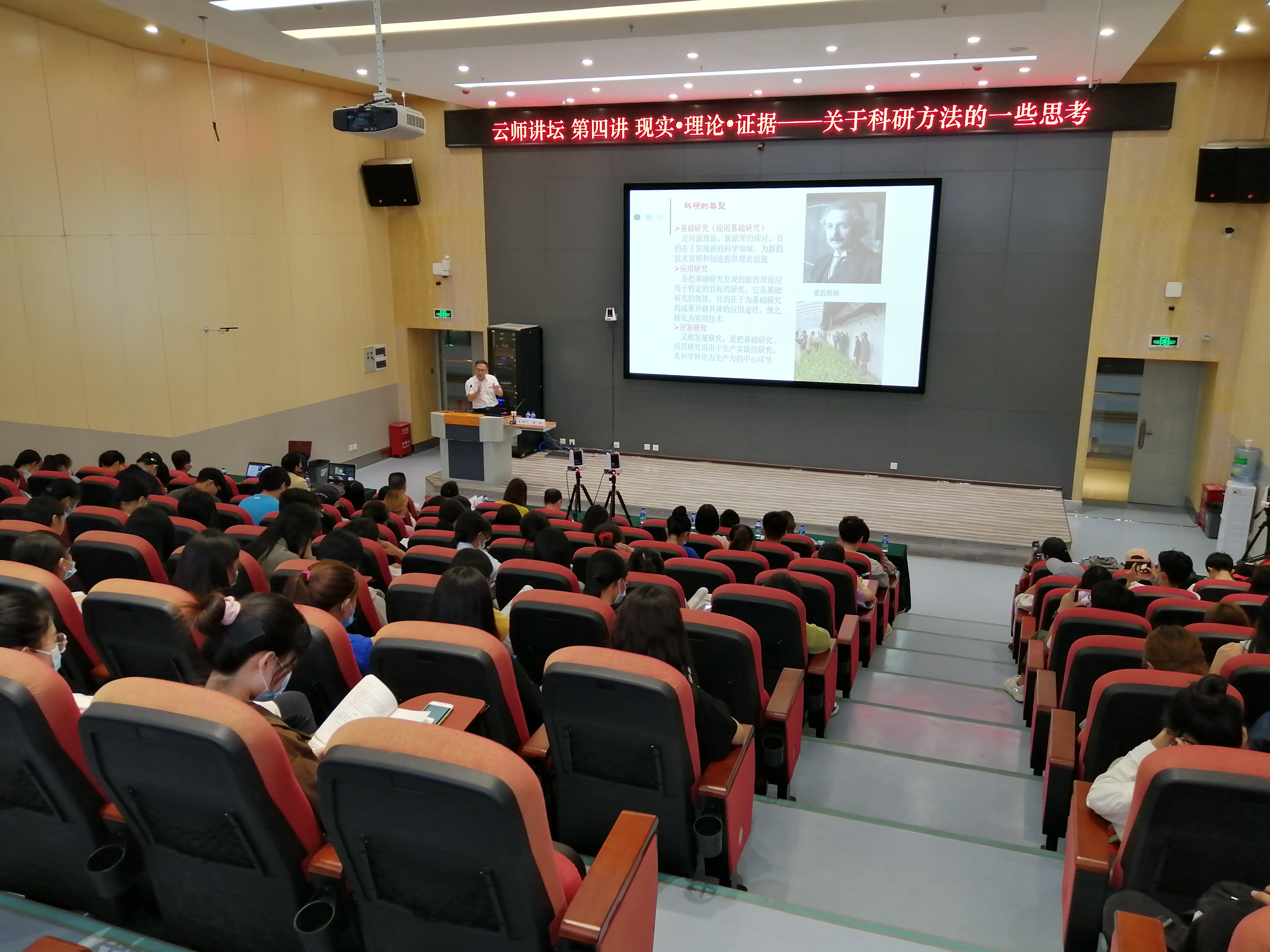 陈新教授以“现实•理论•证据——关于科研方法的一些思考”为讲座主题,与现场师生进行了分享交流。他从四个方面开讲,一是指出大学生为什么要做科研;二是大学生做科研的必备素质;三是大学生做科研的准备;四是大学生该如何撰写毕业论文。陈教授详细介绍了大学生的科研平台,大学生的科研目的,大学生做科研要具备的8个方面的素质,大学生做科研要做好哪些准备以及如何撰写毕业论文等。讲座贴近同学们实际,对同学们具有很强的指导作用,师生们都表示受益匪浅。
