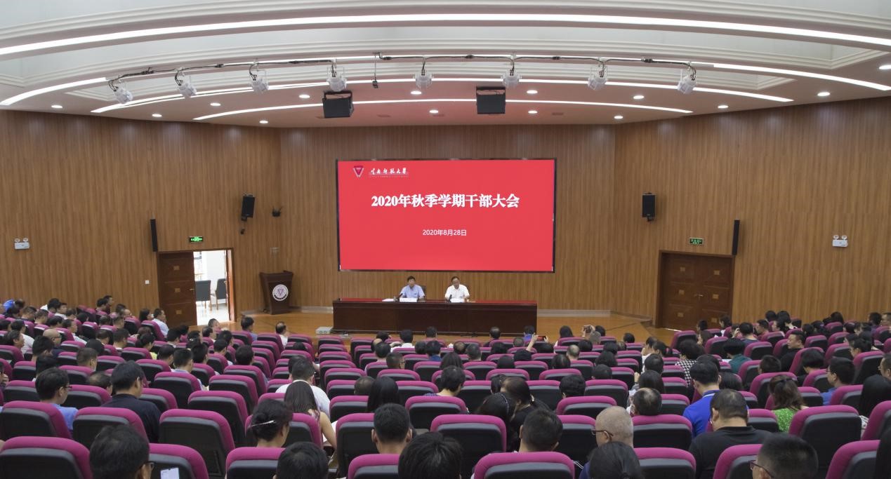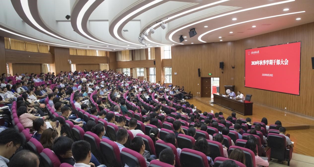 8月28日下午,太阳官网2020年秋季学期干部大会在呈贡主校区汇学2栋101报告厅召开。学校全体校领导,其他省管干部,近三年离退休校领导,全校副处级及以上实职干部,各党政管理机构、党群部门、直属单位、教辅单位副科级及以上实职干部,省部级教学科研平台负责人,省党代会代表、人大代表、政协委员,各民主党派基层负责人,离退休党总支书记等参加会议。会议由校党委书记饶卫主持。