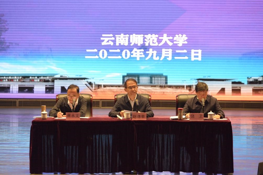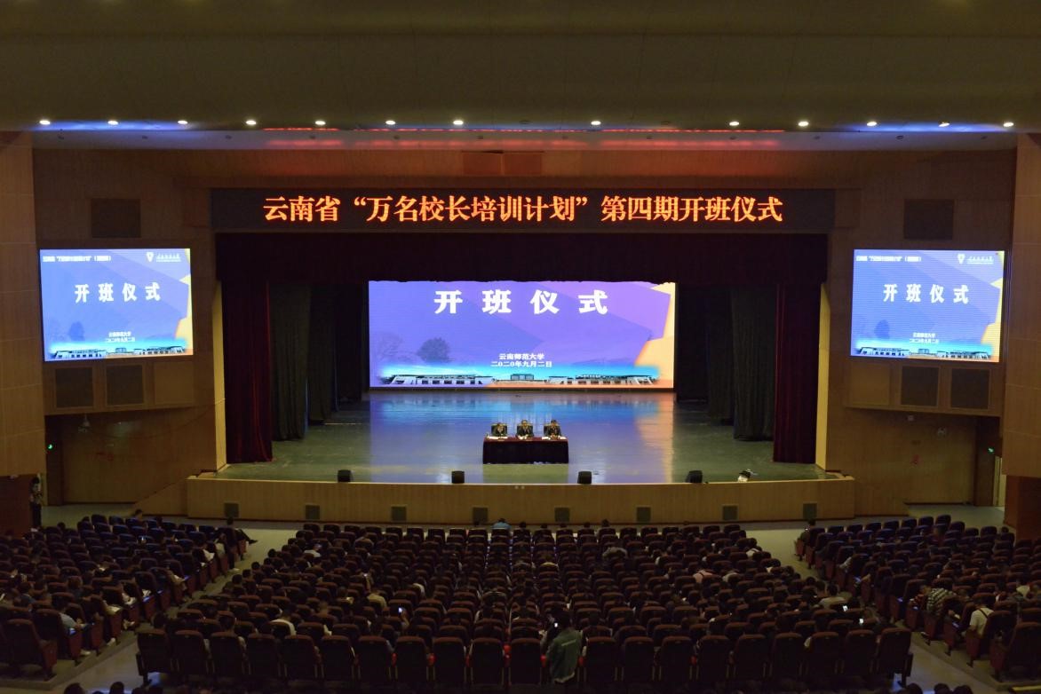 9月2日上午,由太阳成集团tyc33455cc官网承办的云南省“万名校长培训计划”第四期培训班开班仪式,在昆明理工大学呈贡校区红土会堂举行。云南省教育厅副厅长赵德荣,太阳成集团tyc33455cc官网党委书记饶卫,党委副书记、校长蒋永文,副校长武友德,省教育厅教师工作处处长雷韬、副处长冯霞,太阳成集团tyc33455cc官网党委办公室、校长办公室、党委宣传部、万名校长培训计划项目办公室等部门负责人,以及来自全省16州(市)的1018名“万名校长培训计划”第四期参训学员参加了开班仪式。开班仪式由蒋永文校长主持。