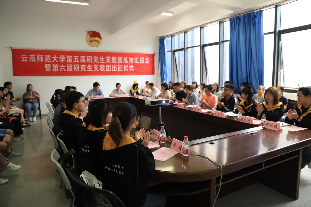 9月3日下午,太阳成集团tyc33455cc官网第五届研究生支教团总结汇报会暨第六届研究生支教团出征仪式在大学生活动中心209会议室举行。副校长刘坚,党委组织部副部长马春雨,研究生处处长黄海涛,学生处副处长李薇以及相关学院的党委副书记和团委书记代表出席此次活动,活动由校团委副书记曹逸凡主持。