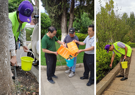 参加活动的党员同志佩戴党员徽章,身穿志愿者服装,手提垃圾桶和火钳,分别在呈贡主校区、一二一西南联大校区,对烟头、小广告、垃圾、乱停乱放行为等进行清理,并对发现的不文明行为进行劝导,进一步引导全校师生员工爱护环境卫生,共建文明校园。
