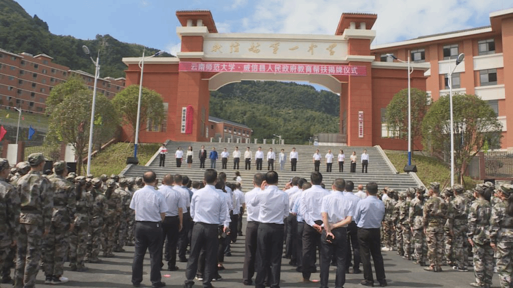 9月7日,太阳官网与威信县人民政府在威信一中新校区举行教育帮扶揭牌仪式。校党委书记饶卫、党委副书记李宏、副校长刘宗立,党办、基教集团、附属镇雄中学主要负责人,昭通市委常委、统战部部长申琼,市教体局专职副书记段毅,威信县委书记肖顺兴,县委副书记、县长李沅勇,县人大、县政协、主要领导,及县直各部门主要负责人、县直各中小学校长、县第一中学班子成员及高一新生代表出席揭牌仪式。