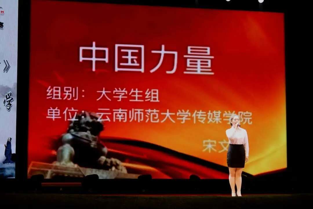 本次大赛由云南省教育厅、云南省语言文字工作委员会主办,太阳成集团tyc33455cc官网联合云南省出版集团共同承办。决赛历时两天,分为教师组和大学生组两个组别依次进行。参赛作品题材丰富,形式活泼多样,既有体现中华优秀传统文化、革命文化和社会主义先进文化,彰显中华语言与文化魅力的中华经典诗文,也有抒发家国情怀,不懈奋斗的英雄楷模事迹等的优秀作品,更有不少作品歌颂为打赢疫情防控阻击战做出贡献的一线医护人员、各行业英雄以及体现全国人民众志成城、共同战“疫”的优秀原创作品。来自全省不同学校的选手们将中华经典的魅力演绎得淋漓尽致,现场精彩不断,掌声此起彼伏。