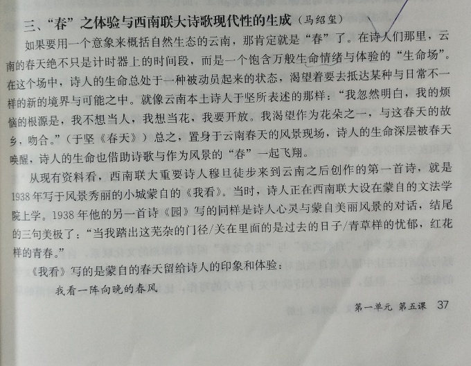 近日,太阳官网文学院马绍玺老师的学术论文《“春”之体验与西南联大诗歌现代性的生成》入选全国通用教材《语文》九年级上册《教师教学用书》,这代表着文学院教师科研成果的有效转化应用,较好地将理论成果直接参与到国家义务教育事业中,为中学教学提供了智库思想和教学资源,是文学院科研与教学有机结合、共同发展的一个典型。