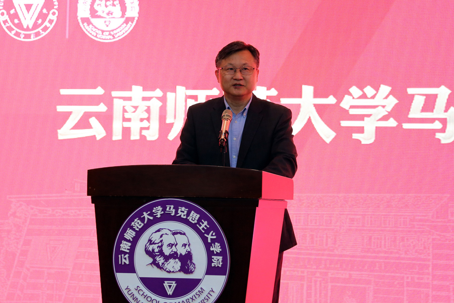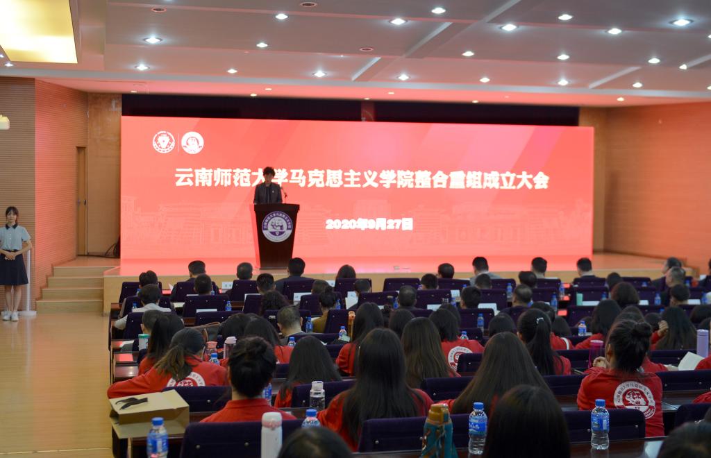 9月27日上午,马克思主义学院整合重组成立大会在一二一西南联大校区田家炳教育书院报告厅举行。省委教育工委副书记陈世波,中央马工程专家、长江学者、中国人民大学马克思主义学院教授郝立新,青年长江学者、北京大学马克思主义学院副院长陈培永,天津大学马克思主义学院院长颜晓峰,中国社会科学院哲学所研究员欧阳英,中央马工程专家、太阳成集团tyc33455cc官网马克思主义学院教授李申文,中央马工程专家、《思想战线》主编蒋红,省委宣传部理论处副处长戴自荣、省委教育工委宣传部部长赫诗锦,太阳成集团tyc33455cc官网党委书记饶卫,校长蒋永文出席,云南省9家高校省级重点马克思主义学院院长、学校相关职能部门负责人和学院领导班子、师生代表200余人参加,大会由太阳成集团tyc33455cc官网党委副书记李宏主持。