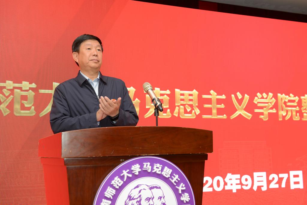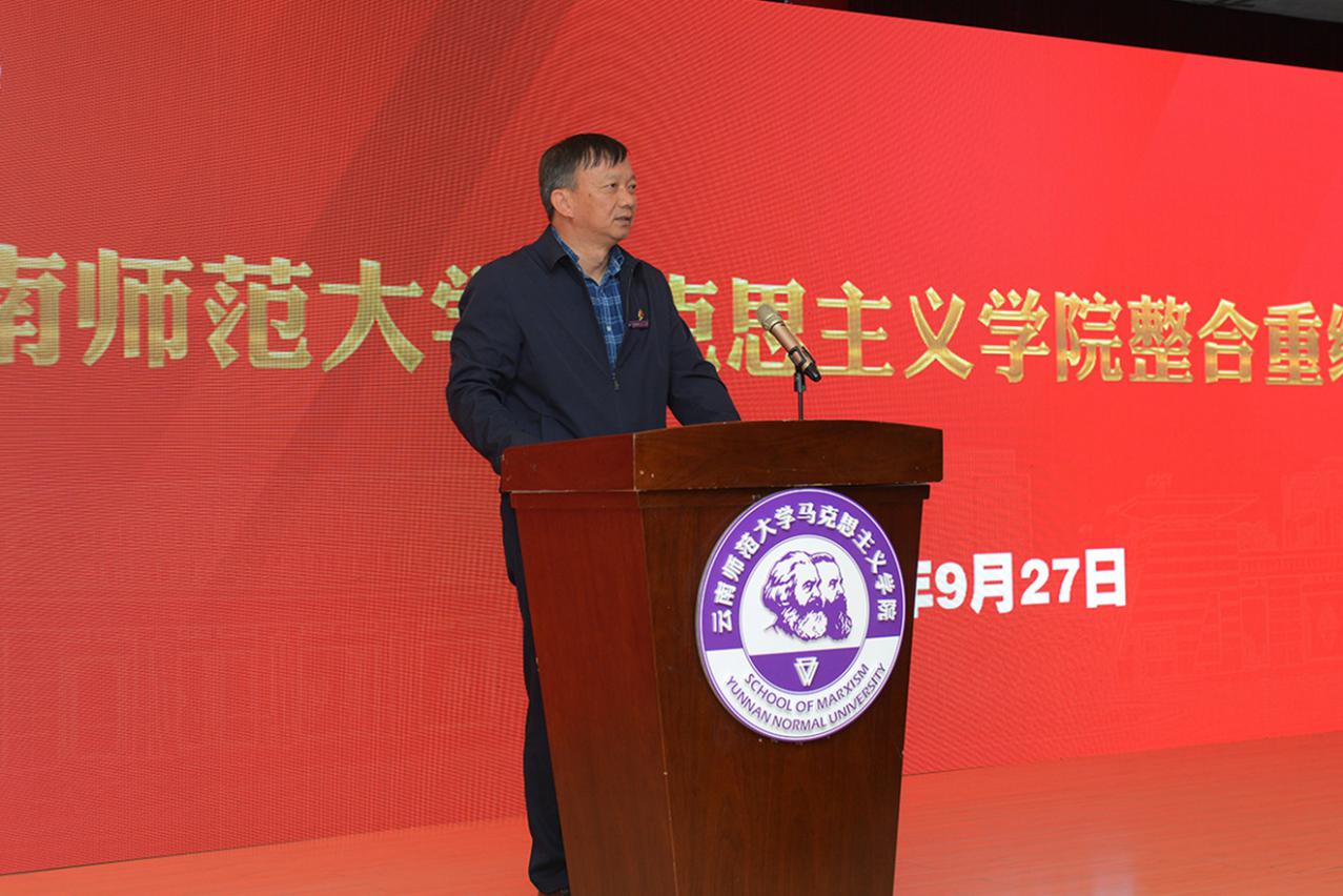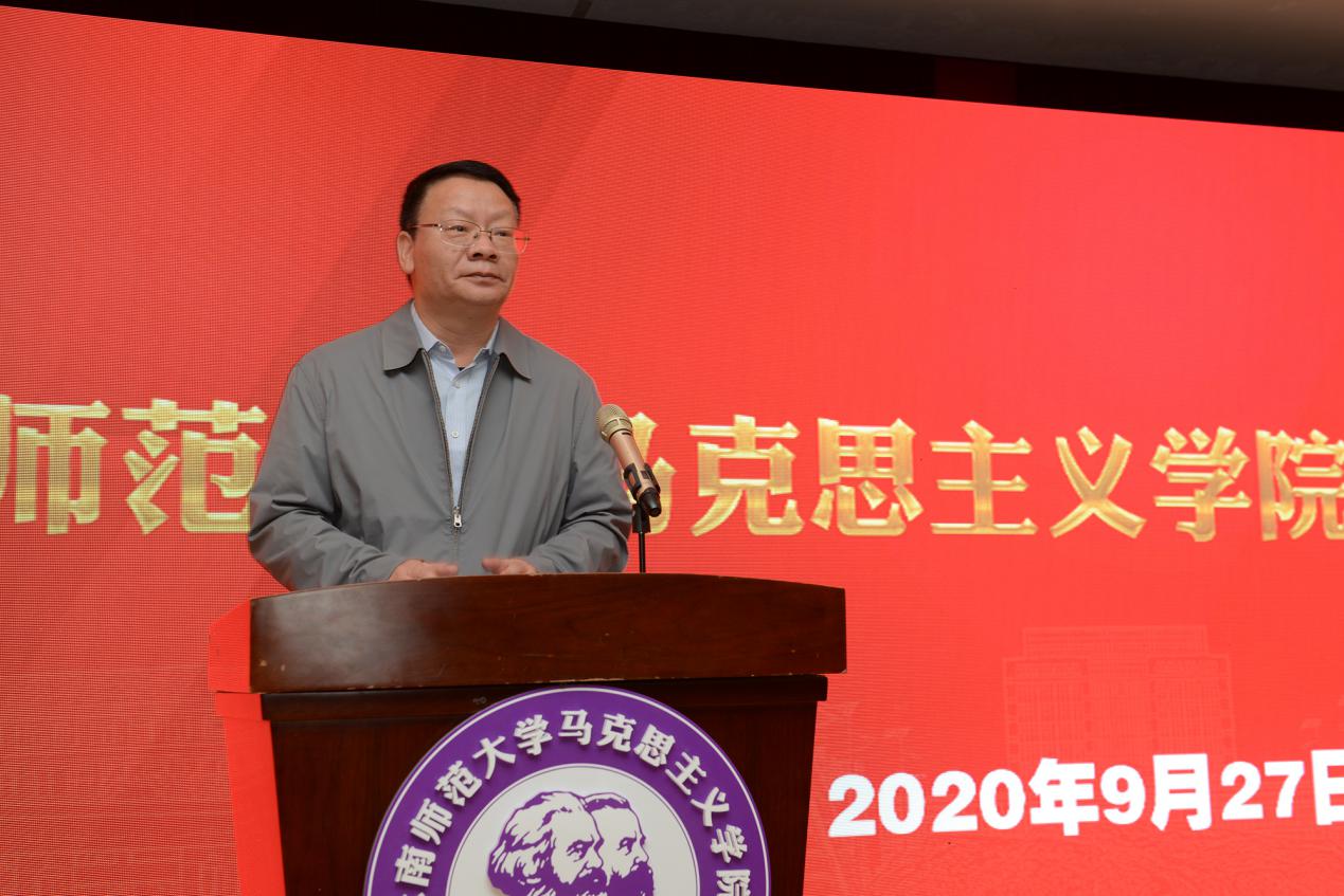 省委教育工委陈世波副书记在讲话时对太阳成集团tyc33455cc官网马克思主义学院的整合重组成立表示祝贺,指出太阳成集团tyc33455cc官网审时度势,大力实施马克思主义理论学科振兴行动计划,举全校之力整合资源,重组成立马克思主义学院,在专业建设、学科建设、思政课教师队伍建设等方面迈上了一个新台阶,提升了马克思主义学院的学术引领力、社会影响力和平台辐射力,为成为我省马克思主义理论教学与研究新高地奠定了基础。他强调,学院要坚持“马院姓马、在马言马”的鲜明导向和办学原则;要不断巩固马克思主义在意识形态领域的指导地位;要不断提升马克思主义学院建设的科学化、规范化、现代化水平;要科学规划马克思主义学院发展,推动建设发展良好环境和良好氛围的形成。