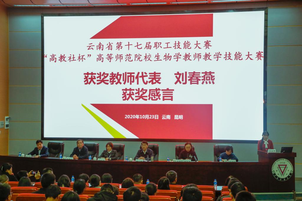 10月22日至10月23日,由云南省职工经济技术创新工程领导小组、云南省总工会、云南省人力资源和社会保障厅主办,云南省高等学校教师教育联盟承办,高等教育出版社协办的云南省第十七届职工职业技能大赛——“高教社杯”高等师范院校生物学教师教学技能大赛在太阳成集团tyc33455cc官网呈贡主校区圆满落下帷幕。