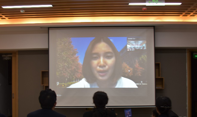 段洁云副院长和郭中丽副院长分别就本学期本科留学生和研究生留学生的教学安排进行介绍,勉励同学们积极参与线上学习,提升学习效果。汉教系陈样琳老师代表学院全体留学生任课教师对新同学们表达了祝贺与欢迎,同时表示老师们会积极帮助同学们解决线上学习遇到的困难和问题,竭尽全力为同学们提供优质的汉语教学服务。