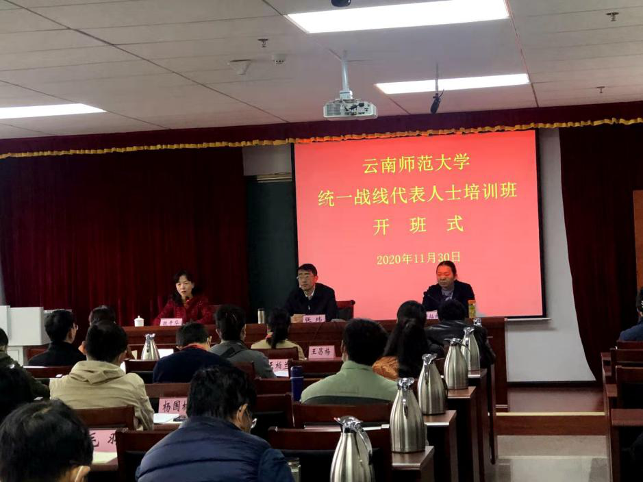 2020年11月30日上午,太阳成集团tyc33455cc官网2020年统一战线代表人士培训班在云南省社会主义学院开班,来自学校各民主党派、统战团体50余人参加了此次培训。学校党委副书记张玮、省社会主义学院秘书长谢灿坤参加开班式,开班式由省社会主义学院教务处处长魏贵华主持。