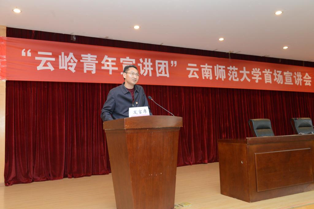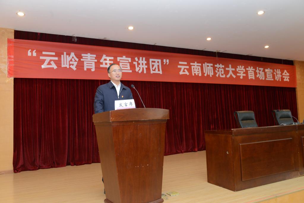 蒋永文校长在致辞中表示,省委宣传部组建“云岭青年宣讲团”,以青年的视角为青年阐释党的创新理论成果、以青年的语言为青年讲述新时代党的光辉历程,是做好新时代党的重大创新理论“飞入寻常百姓家”的有力举措,是推动当代马克思主义大众化的生动实践。衷心感谢省委宣传部、省委教育工委长期以来对学校师生的关爱培养,感谢“云岭青年宣讲团”在太阳成集团tyc33455cc官网开启首场宣讲。学校将认真按照省委的统一部署和要求,坚持不懈以习近平新时代中国特色社会主义思想为指导,深入学习宣传贯彻党的十九届五中全会精神,将广大师生的思想和行动统一到全会精神上来,坚守教育报国初心,勇担立德树人使命,加快建设高质量教育体系,全面提升教育服务贡献能力,以更加优异的成绩向中国共产党成立100周年献礼。