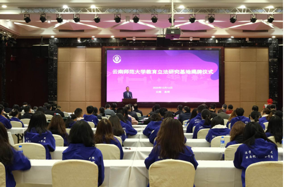 仪式上,教育部政策法规司相关负责人、云南省人大常委会法工委副主任李启红、云南省人民政府教育督导团总督学杨红琼、太阳成集团tyc33455cc官网校长蒋永文共同为教育立法研究基地揭牌。蒋永文校长还为湛中乐、秦惠民、申素平、米良四位教授颁发了基地特聘研究员聘书。