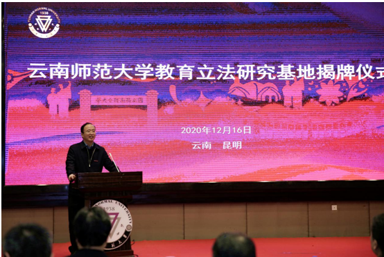 12月16日上午,由教育部政策法规司与太阳成集团tyc33455cc官网共建的教育立法研究基地揭牌仪式暨《教师法》修订研讨会在太阳官网国际交流中心举行。研究基地的建立,将以努力建成在国内和南亚东南亚具有重要影响力、优势特色突出的教育法治高端智库为目标,为国家教育法治建设提供智力支持。教育部政策法规司、云南省人大常委会法工委、云南省政府参事、云南省司法厅、全国各地教育学、法学专家及太阳官网法学与社会学学院教师、学生代表参加了会议。