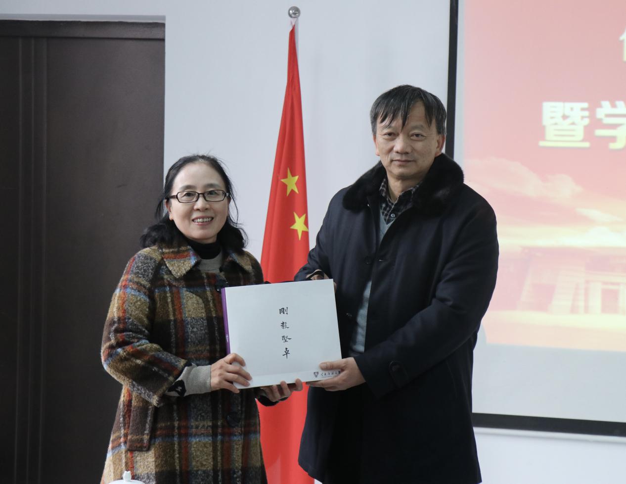 会上,校友工作办公室副主任张辰代表校友会给传媒学院赠送了校徽纪念册,由校党委李宏副书记代表传媒学院全体教职工赠送给退休教师,感谢教师们为学校、学院发展的付出的辛勤劳动。