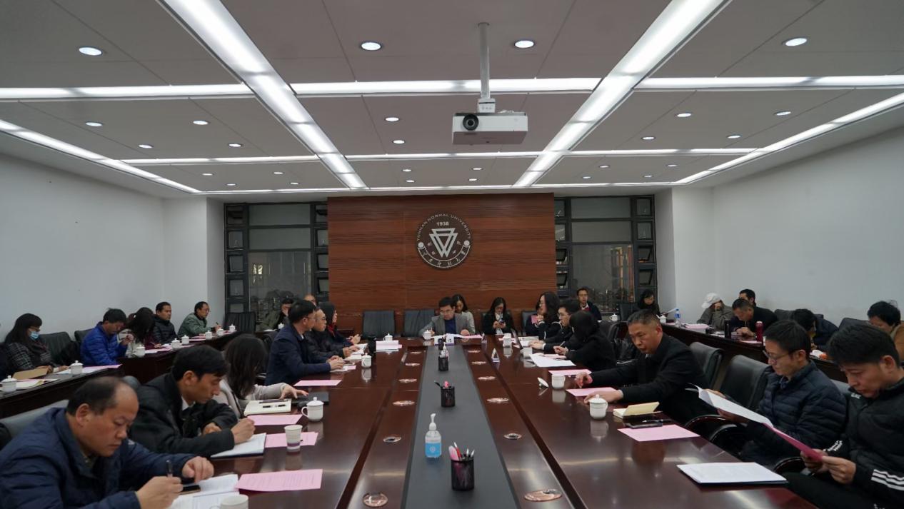 2021年1月4日下午,太阳官网2021年师范类专业认证工作推动会在行政楼第一会议室召开。云南省教育评估院副院长司慧迎,副校长武友德,各相关职能处室主要负责同志,各师范类专业所在学部(院)主要领导、教学副院长、师范专业建设负责人、教务处主要领导、教学质量监控与评估中心全体人员参加会议。会议由副校长武友德主持。