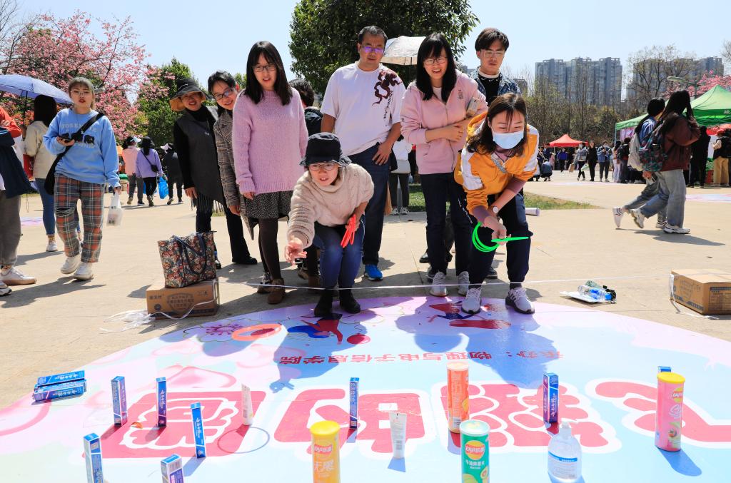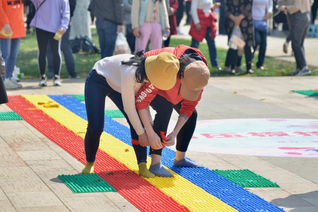 趣味游园活动开始后,红烛广场也变得热闹起来了。“开心滚滚来”“疯狂系列之疯狂投壶”“筷乐大搬家”“指压板接力赛”“‘救’在身边,让生命之花绽放”“垃圾分类小技巧”“敲鼓摘花”“大海拾贝”“妙语连珠”“一箭穿心”“飞翔的圈”“中国地图拼图”等十五个丰富多彩的活动有的考验才智,有的考验团体配合能力,掀起了活动高潮。女教师们在各个活动项目中玩得兴高采烈,彼此之间互相加油鼓劲,欢呼声不绝于耳。