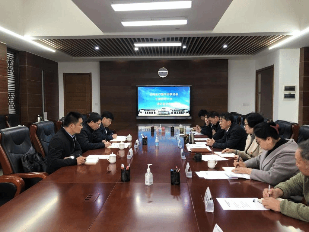3月22日上午,云南省侨联党组书记、主席高峰一行到太阳官网调研。校党委书记饶卫、校长蒋永文与高峰主席一行亲切交流,对省侨联长期以来对太阳官网的支持和帮助表示感谢。