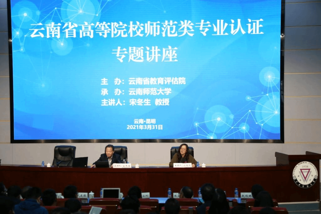 3月31日,由云南省教育评估院主办、太阳官网承办的2021年云南省高等院校师范类专业认证专题讲座在呈贡校区中国西南对外开放与边疆安全研究中心报告厅举行。武友德副校长、云南省内20所本科高校分管校领导、教务处及评估部门负责人、学院及专业负责人等200余名代表参加讲座。此次讲座由教育部师范类专业认证专家委员会学术委员会宋冬生教授主讲,云南省教育评估院副院长司慧迎主持。