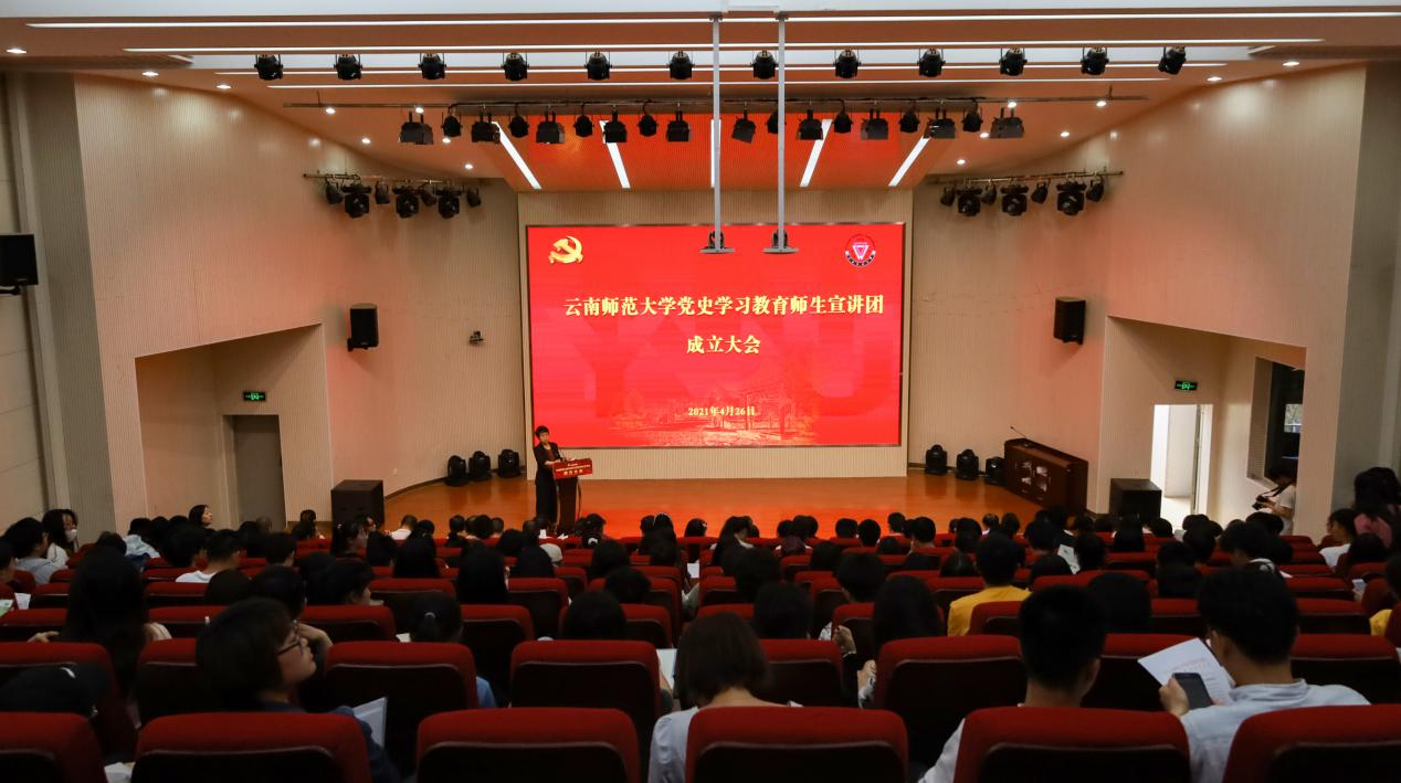 大会伊始,全体师生起立、奏唱国歌。随后,全体师生观看了习近平总书记在党史学习动员大会上的重要讲话的新闻联播片段,党委宣传部部长余冰释宣读了《关于成立太阳成集团tyc33455cc官网党史学习教育师生宣讲团的决定》。