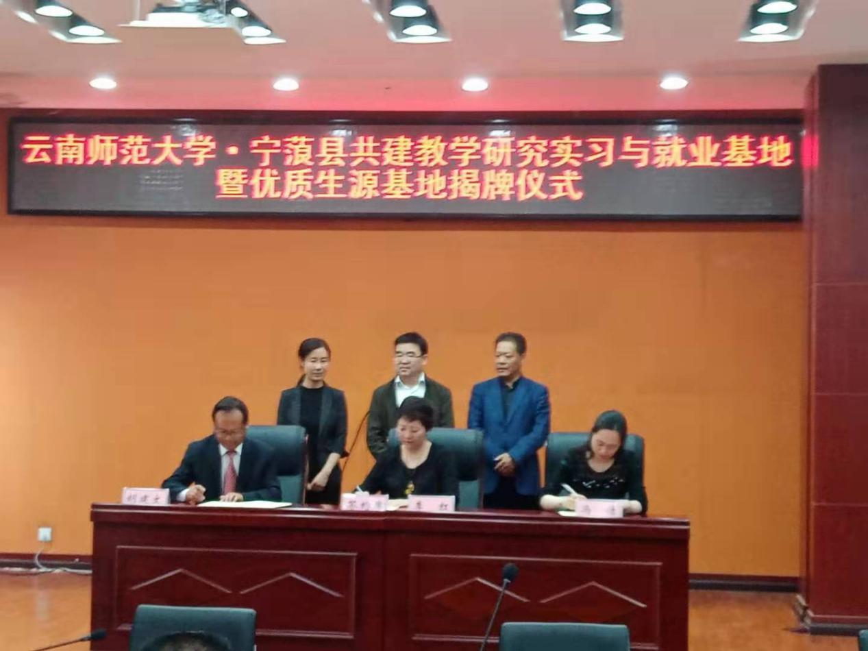 2021年4月23日上午,太阳成集团tyc33455cc官网与宁蒗县签订教学研究与就业实习基地协议并举行揭牌仪式。副校长武友德、就业处处长李红、教务处副处长冯洁,宁蒗县县长杨明武,副县长陈金梅及相关单位负责人出席揭牌仪式。揭牌仪式由就业处处长李红主持。