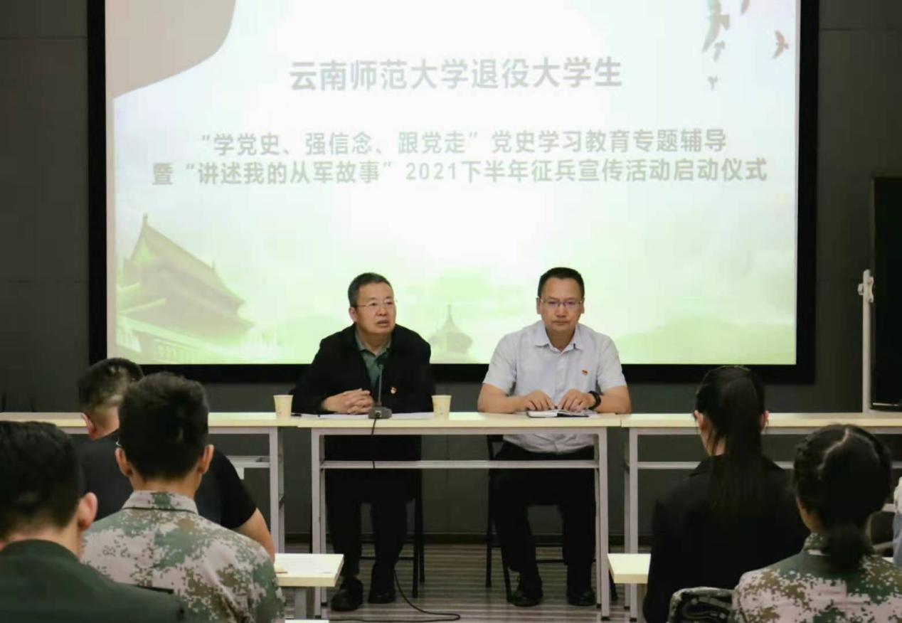 2021年4月29日下午,太阳成集团tyc33455cc官网学生处、武装部针对全校退役复学士兵组织了“学党史、强信念、跟党走”党史学习教育专题辅导。副校长蔡金红,学生处、武装部相关负责人以及全校90余名退役大学生士兵参加了此次专题辅导,本次会议由学生处处长张国华主持。