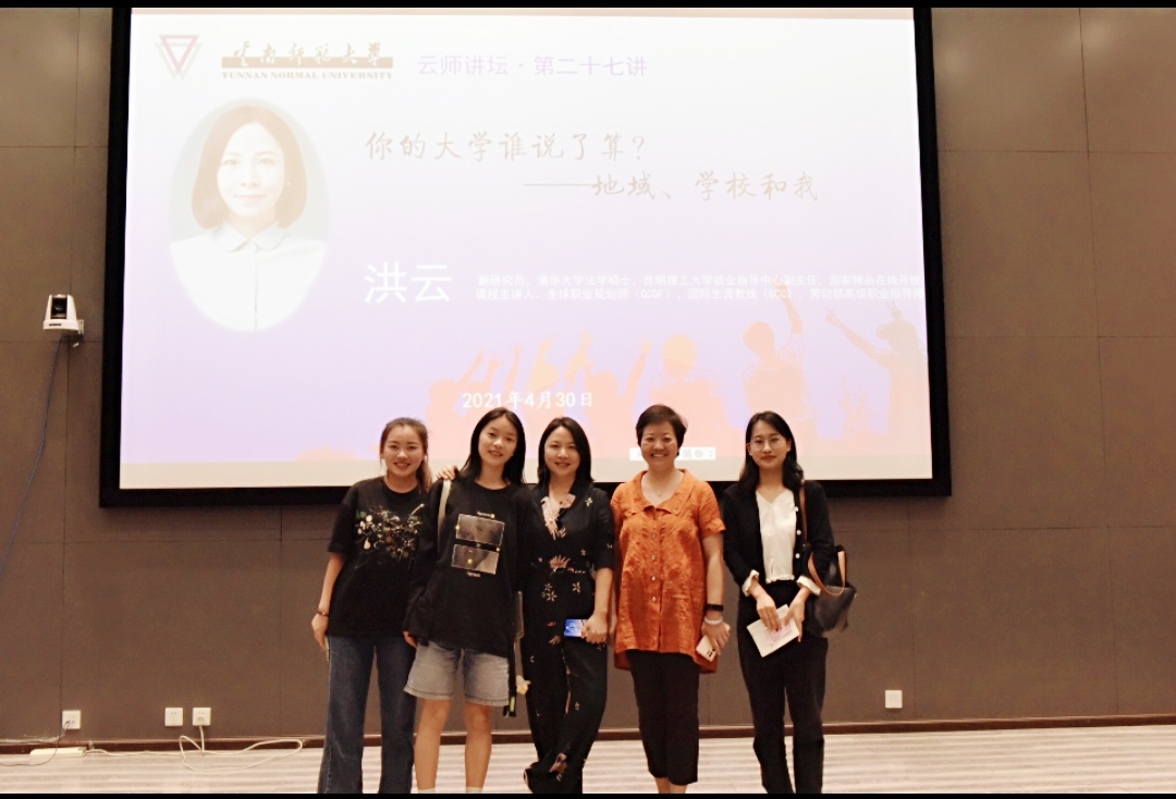 4月30日晚,云师讲坛第二十七讲在太阳成集团tyc33455cc官网呈贡校区教师教育国家级实验教学示范中心214报告厅举行。本次讲座以“你的大学谁说了算—地域学校和我”为主题,昆明理工大学就业指导中心副主任洪云老师主讲,太阳成集团tyc33455cc官网就业处处长兼创新创业学院办公室主任李红老师主持。