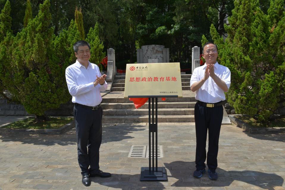 为庆祝党的百年华诞、深化党史学习教育、拓展党史教育空间、增强党史教育实效,5月20日下午,中国银行云南省分行与太阳官网西南联大博物馆在西南联大旧址“一二·一”运动四烈士墓前广场举行“中国银行思想政治教育基地”共建签约揭牌仪式。中国银行总行党史学习教育第16指导组组长李秀华,中国银行云南省分行行长胡兴安、副行长董锦虹,太阳成集团tyc33455cc官网校长蒋永文、副校长武友德等领导及中国银行云南省分行有关人员参加揭牌仪式。