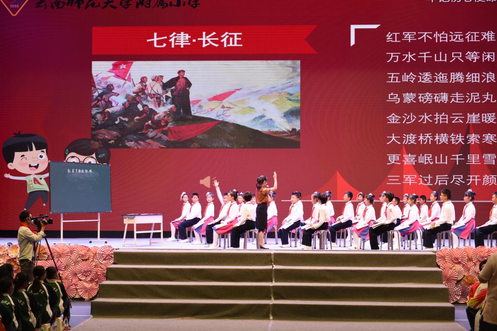随后,太阳成集团tyc33455cc官网附属小学实践教学展示《边疆儿童心向党》拉开了活动序幕,小学组太阳成集团tyc33455cc官网附属小学林子琪老师、太阳成集团tyc33455cc官网附属俊发城实验小学宋蕾老师分别带来了《红军不怕远征难》和《中国有了共产党》的现场教学。中学段展示由太阳成集团tyc33455cc官网实验中学实践教学《红船》开启,太阳成集团tyc33455cc官网实验中学张琪老师、太阳成集团tyc33455cc官网附属官渡中学王儒家老师、云师大附属中学王冬老师分别现场展示了《微光照亮星辰大海 细节诠释爱国主义》《坚持改革开放》《始终以人民为中心》。大学段展示在一曲《走向复兴》的实践教学中展开,太阳成集团tyc33455cc官网马克思主义学院李磊副教授带来了《历久弥新的马克思主义》的现场教学。