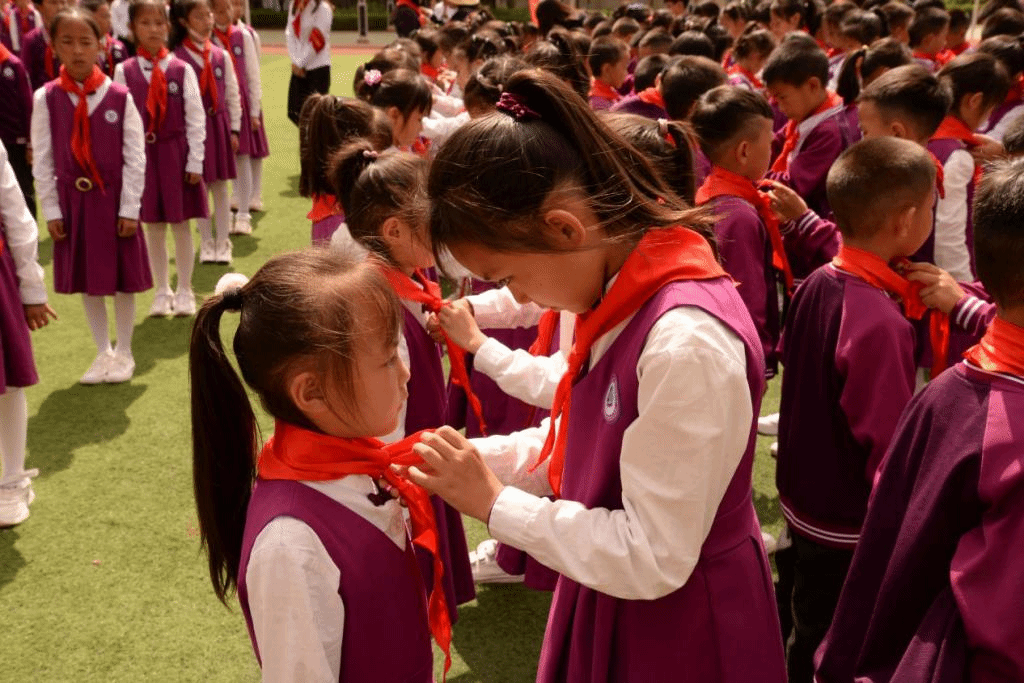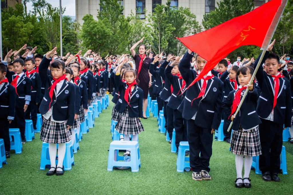 太阳成集团tyc33455cc官网实验中学附属小学(昆明湖校区)在这个充满幸福、快乐与甜蜜的日子里举行“红领巾·心向党”新队员入队仪式。